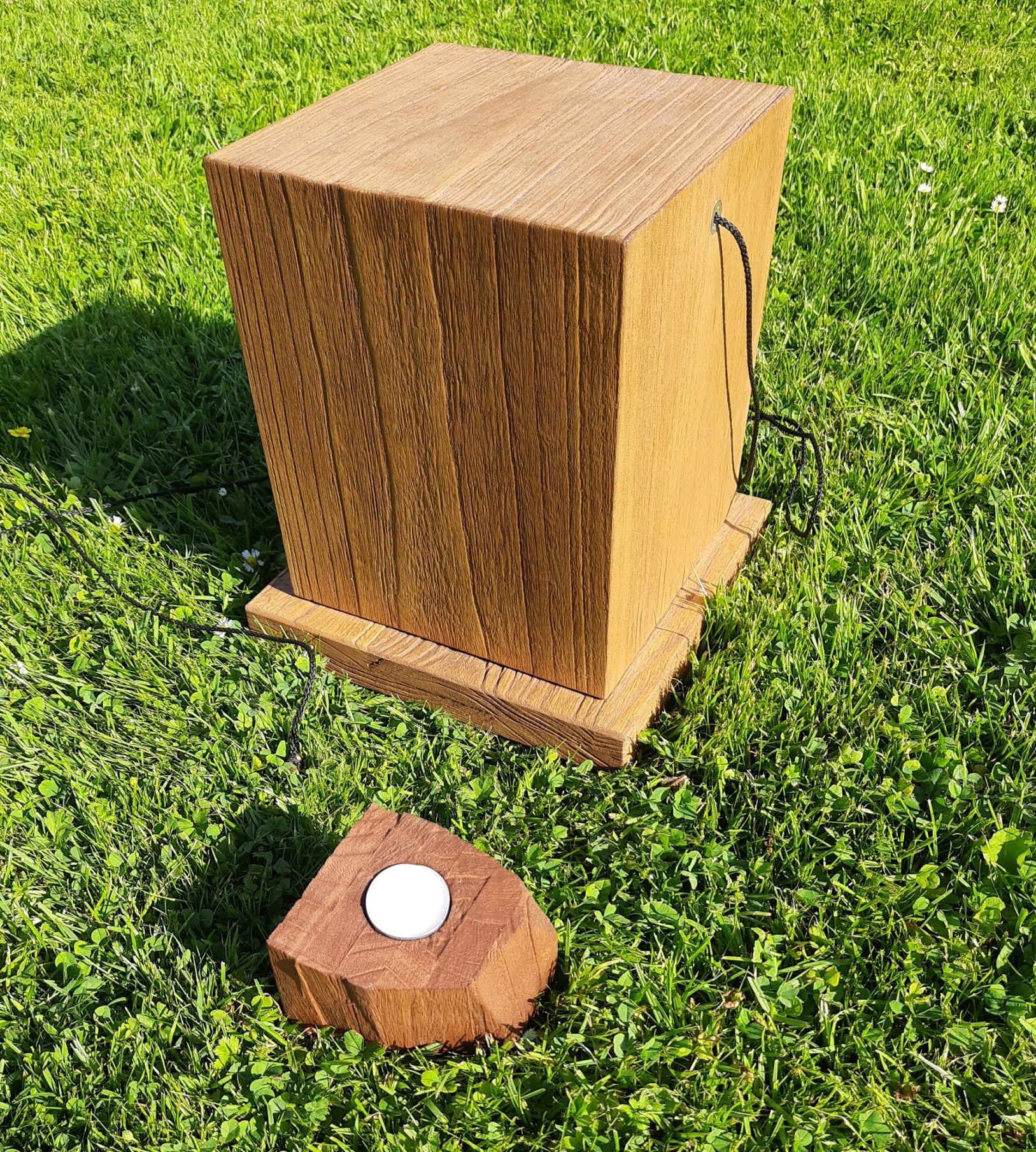Als exklusive Besonderheit sind die kleinen Teelichthalter aus dem Holz jeder einzelnen Urne hervorzuheben. Die Teelichthalter werden den Verwandten mitgegeben & sind im angegebenen Preis inbegriffen.Stammbearbeitung