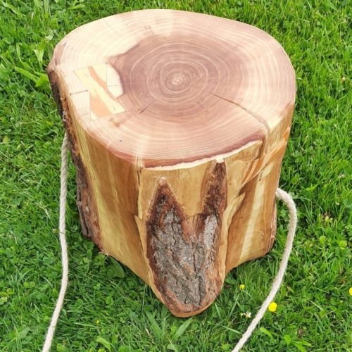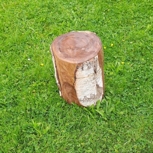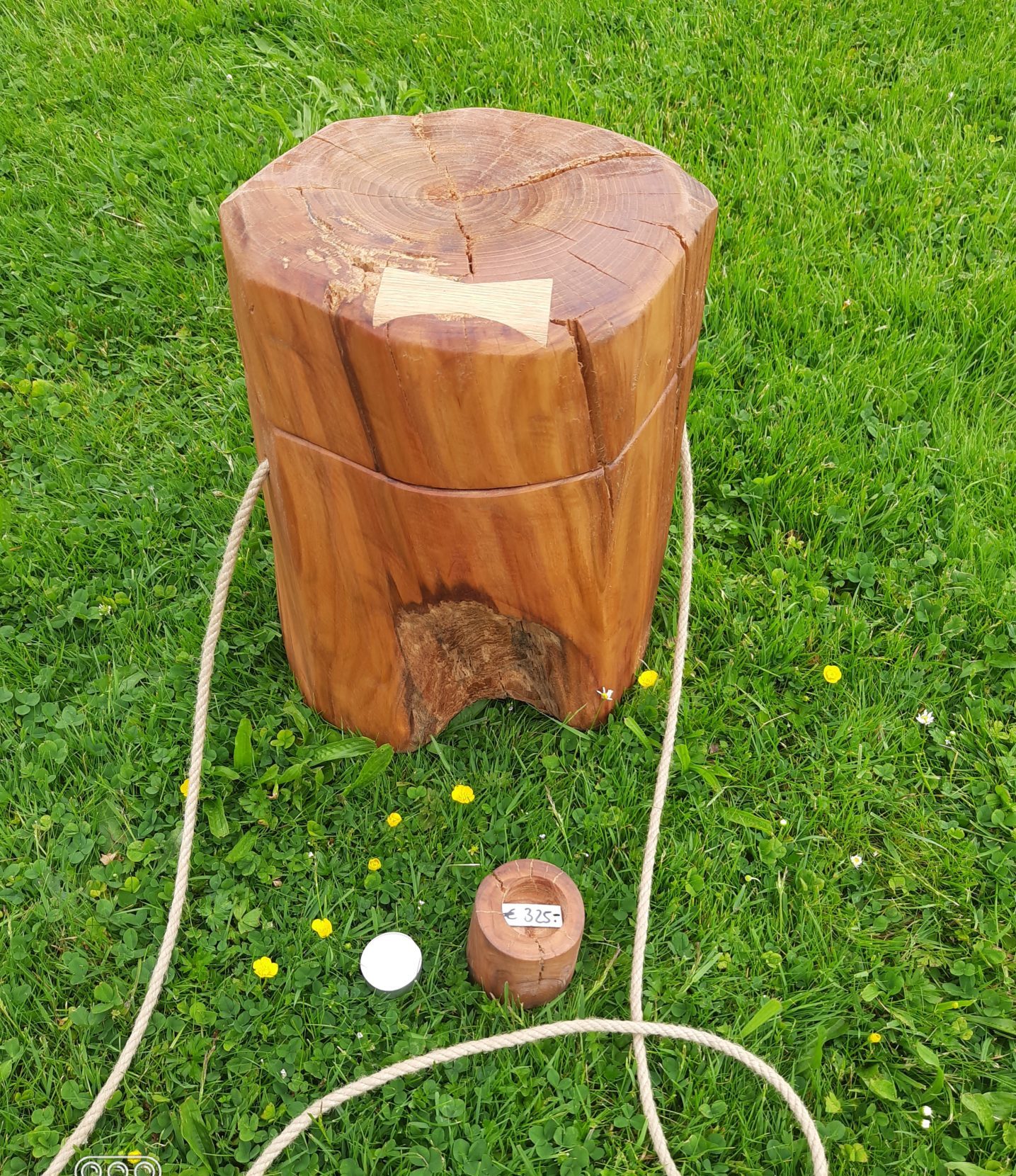 Der kleine Teelichthalter aus dem Kern des Kirschenstamms für die Angehörigen ist fertig. Symbolisch & tatsächlich ist der kleine Teelichthalter das Herzstück des Stamms.